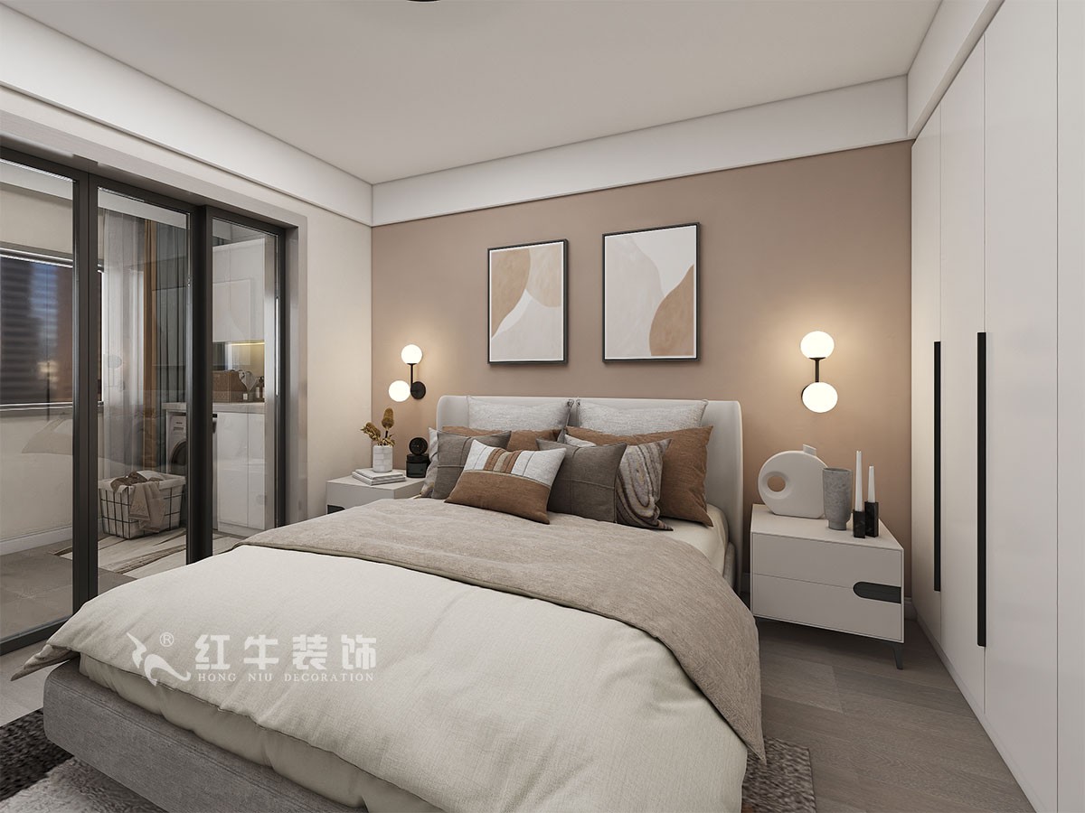 此案主要是婚房居住,在舒適度上要求比較高,臥室是整套房子中最私人也是最體現(xiàn)出溫馨休閑感的空間,在設計時體現(xiàn)出靜謐舒適的感覺,并且與其他空間明顯的區(qū)別,利用衛(wèi)生間砌墻,把電視掛墻上,把冰箱嵌入餐廳柜子,更好的布局。這樣舒適度更好,區(qū)域劃分明顯,動靜分離。吊頂簡潔大氣,配以輕現(xiàn)代家具,完美闡釋了簡約風格。整體現(xiàn)代簡約風格的設計,搭配上顯眼的綠色植物讓整個空間呈現(xiàn)出一種生機勃勃的自然美。