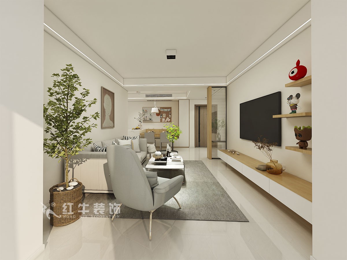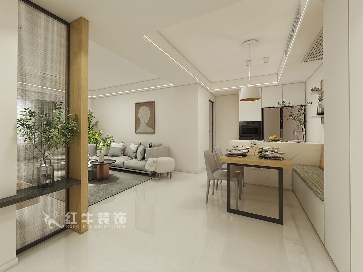 北外灘水城,建筑面積117平方,是高層,房屋的得房率比較低。房子是準(zhǔn)備給孩子做婚房,要求現(xiàn)代簡(jiǎn)約風(fēng)格。業(yè)主比較忌諱進(jìn)門正對(duì)豎墻,還有就是廚房比較小,里面沒(méi)有擺放冰箱的位置。