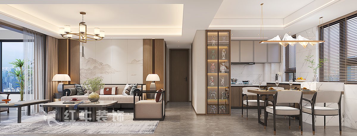精裝修改造, 客戶家里現(xiàn)有很多中式的家具要放到這個(gè)房子里面, 風(fēng)格定位中式風(fēng)格,現(xiàn)在客廳里面的電視對(duì)人們生活的需求越來(lái)越少,取消了電視背景墻和電視機(jī) 。把和書(shū)房空間的墻體大開(kāi), 增加了視線的通透性和空間的互動(dòng)性,廚房和餐廳也是改變了原來(lái)的結(jié)構(gòu), 做成了餐廚一體式樣,增大了活動(dòng)的空間。