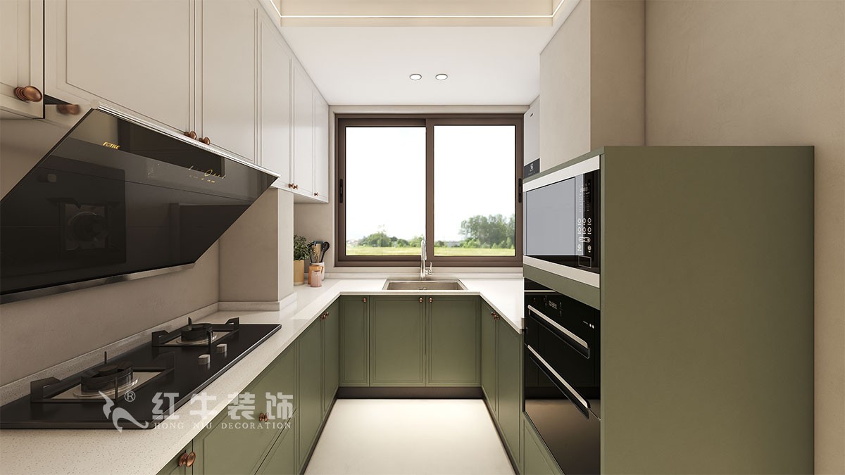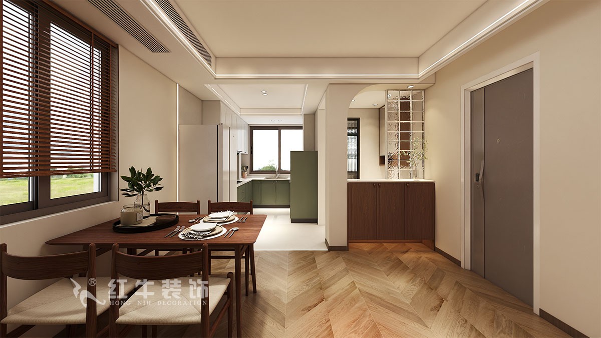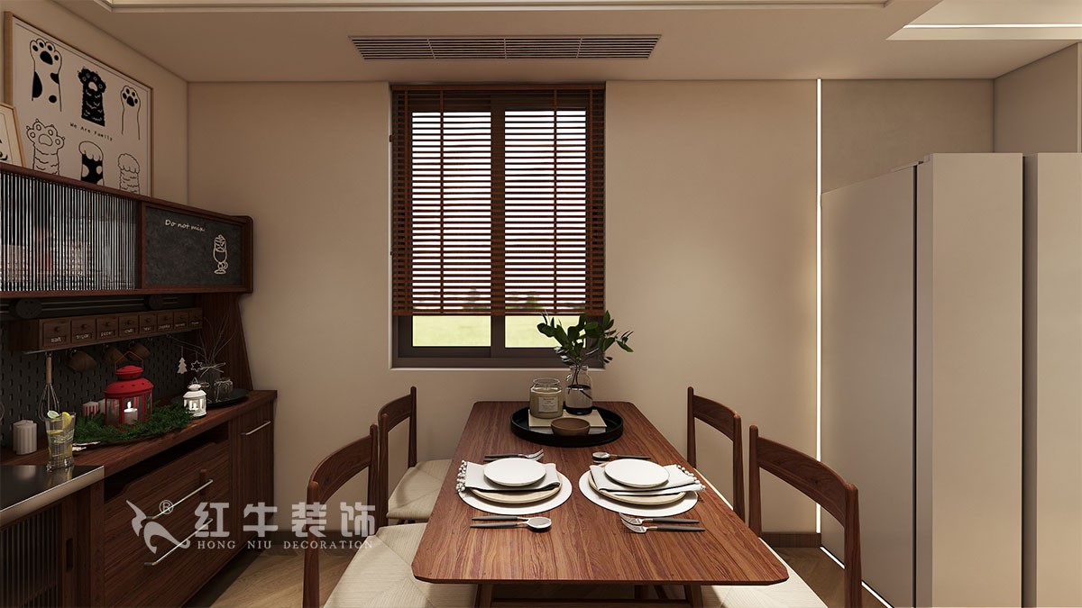 此案主要是四口之家居住裝修,在舒適度上要求比較高,臥室是整套房子中最私人也是最體現出溫馨休閑感的空間,在設計時體現出靜謐舒適的感覺,并且與其他空間明顯的區(qū)別。沒有設計沙發(fā),而是設計大的餐桌,又能當書桌用,又能起到分割空間的作用。廚房窗戶比較大光線就能更好的進到餐廳,衛(wèi)生間也能單獨一個區(qū)域。
