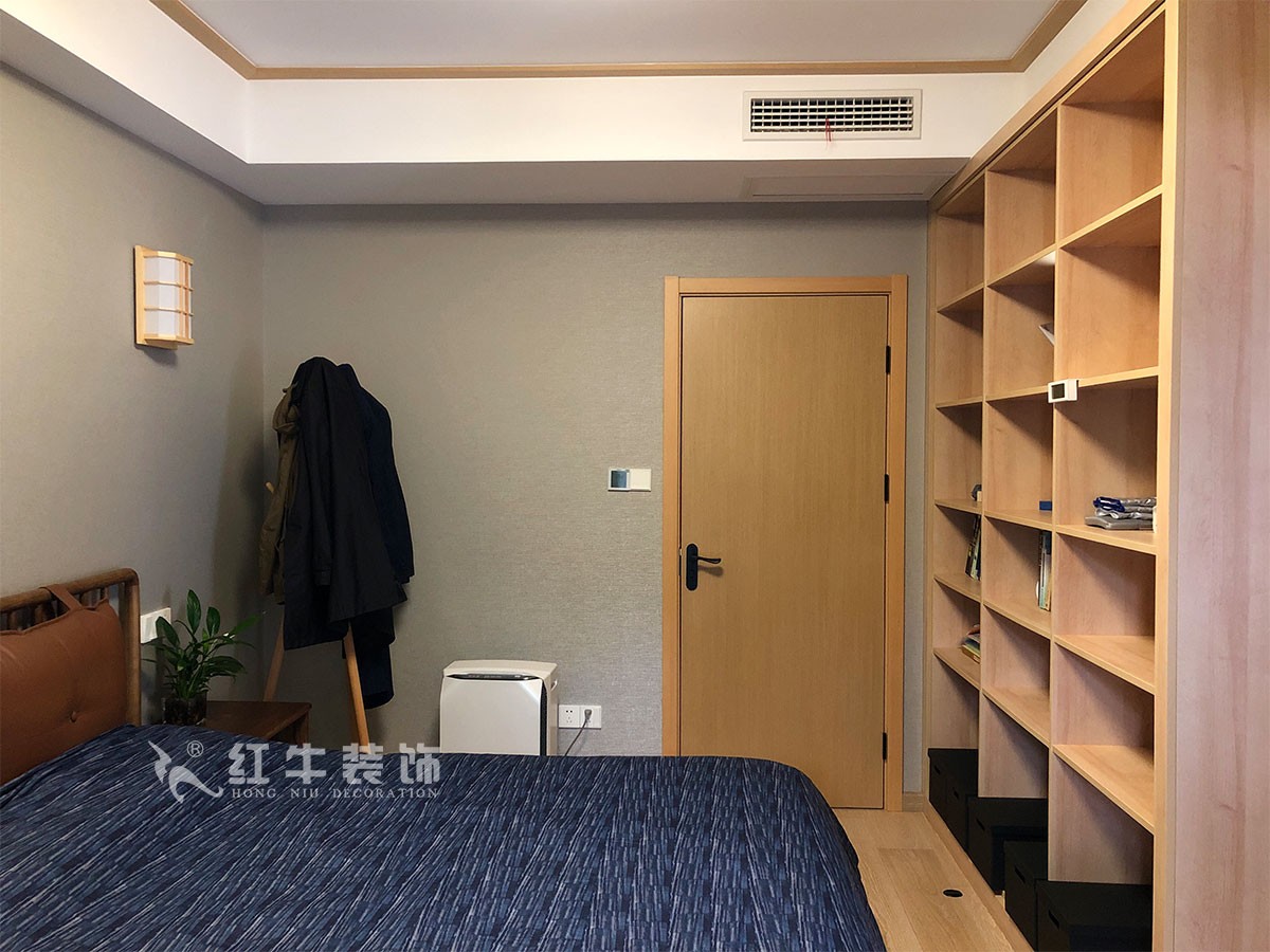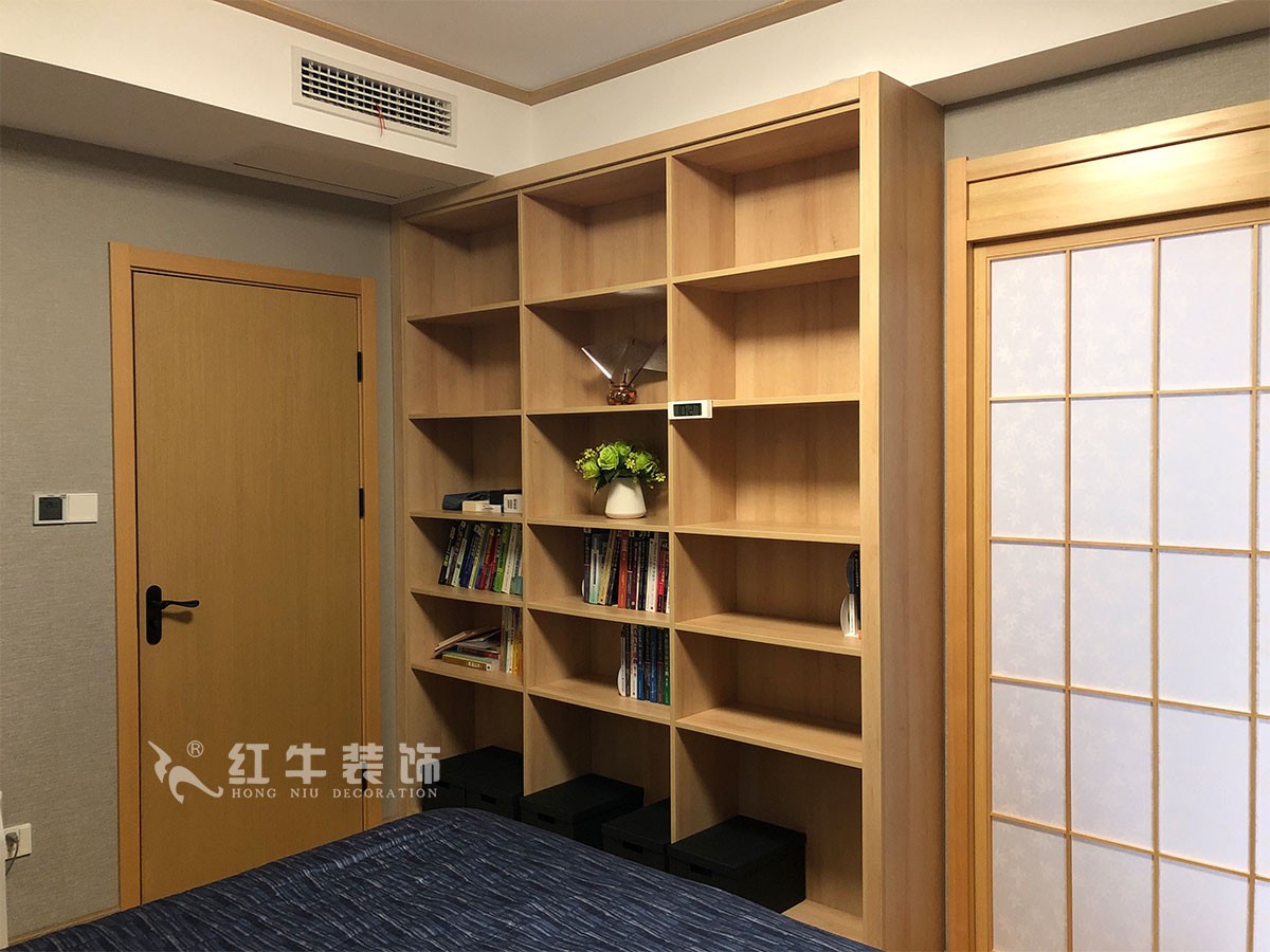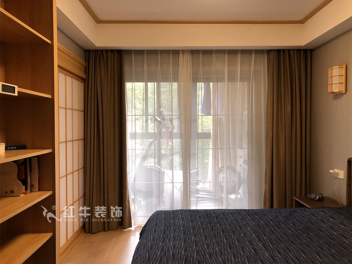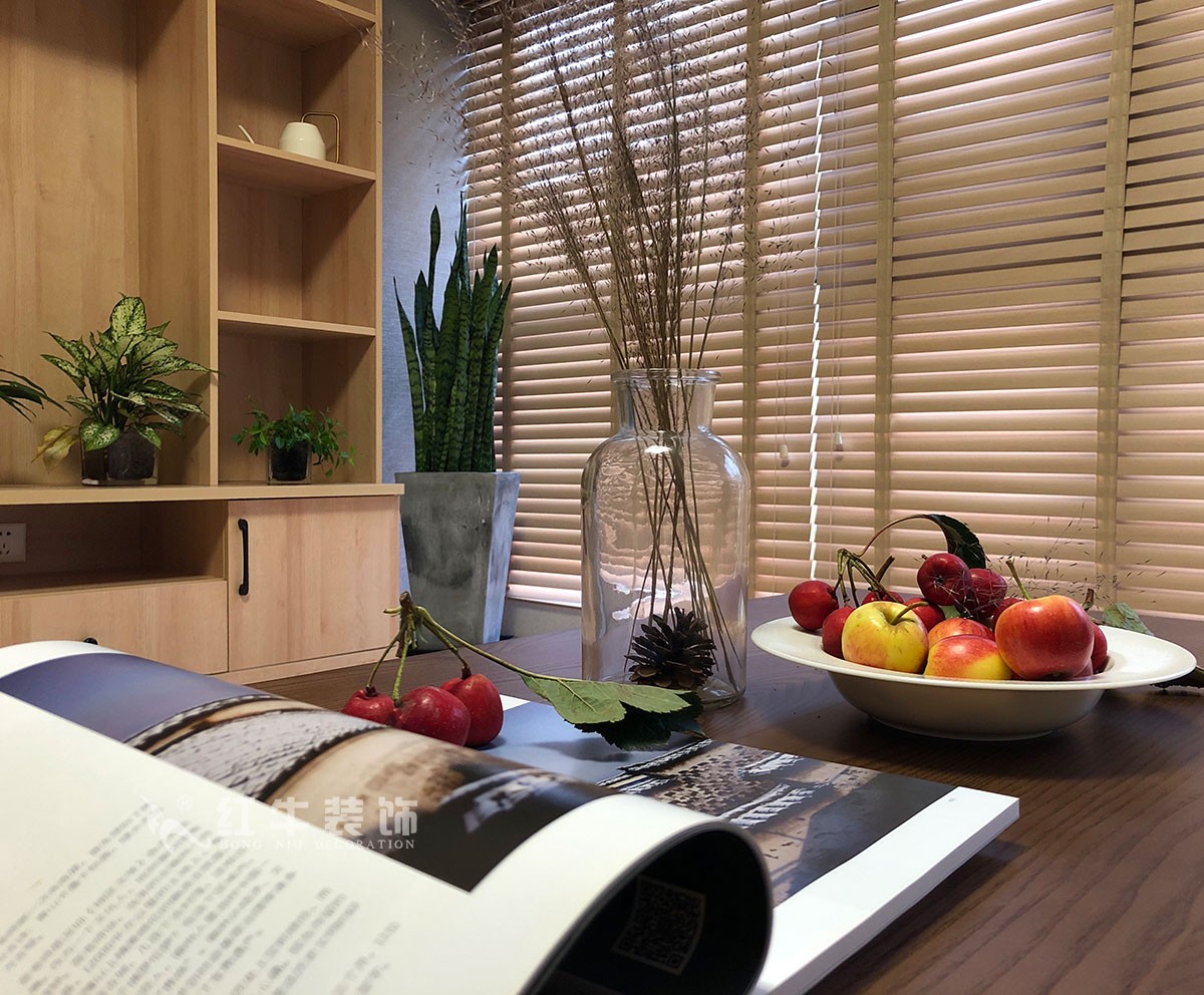 客餐廳色調(diào)清雅,休閑、隨性,又不失精致。電視背景墻依靠大面積開放柜拓展儲物及裝飾功能,給居住者一個慵懶、明快的起居環(huán)境。臥室,依靠木質(zhì)家具本身的線條感,搭配同樣風格的日式壁燈,給人以休閑自在的視覺感受。書房是辦公空間,整面墻全部以臥室同色的麻灰色墻布鋪貼,書桌旁轉角的飄窗給了原本不大的空間一個視覺的開放性,心情也自然就舒緩很多。