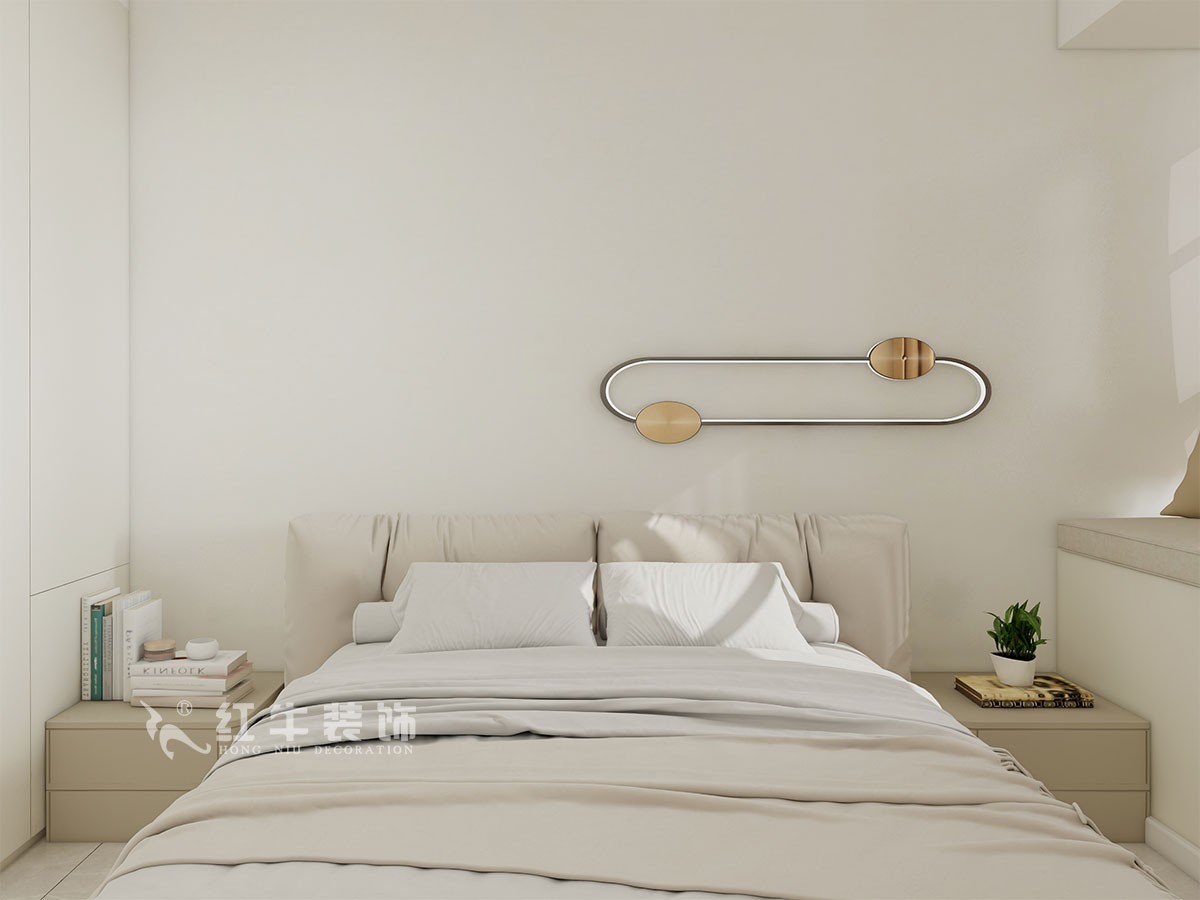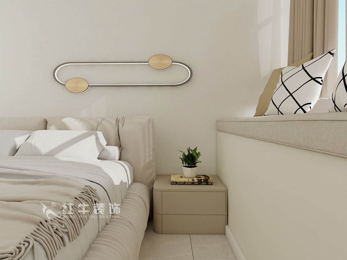 臥室說明:搭配大面積的白色定制衣柜,床頭的光源以不同形勢(shì)呈現(xiàn),既滿足不同燈光需求,又恰到好處地起到了裝飾效果,使整體臥室空間呈現(xiàn)明亮、溫柔的舒適狀態(tài)。