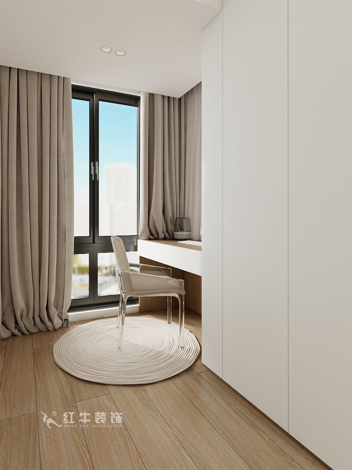 此案主要是改善裝修,在舒適度上要求比較高,臥室是整套房子中最私人也是最體現(xiàn)出溫馨休閑感的空間,在設(shè)計時體現(xiàn)出靜謐舒適的感覺,并且與其他空間有明顯的區(qū)別。餐桌在整個區(qū)域沒地方擺放,于是設(shè)計了鏤空墻體,讓餐桌有靠山,又能起到分割空間的作用。廚房窗戶比較大,光線就能更好地進到門廳,衛(wèi)生間也能單獨一個區(qū)域。
