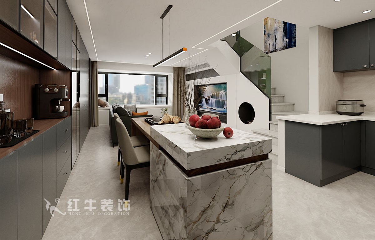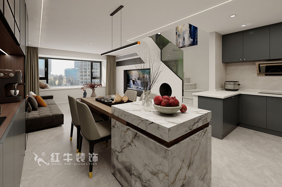 Loft戶型,空間布局上,注重利用有限的空間,例如,開放式廚房和餐廳一體化設計,顯得空間整潔有序,還能讓整個空間更加開闊。