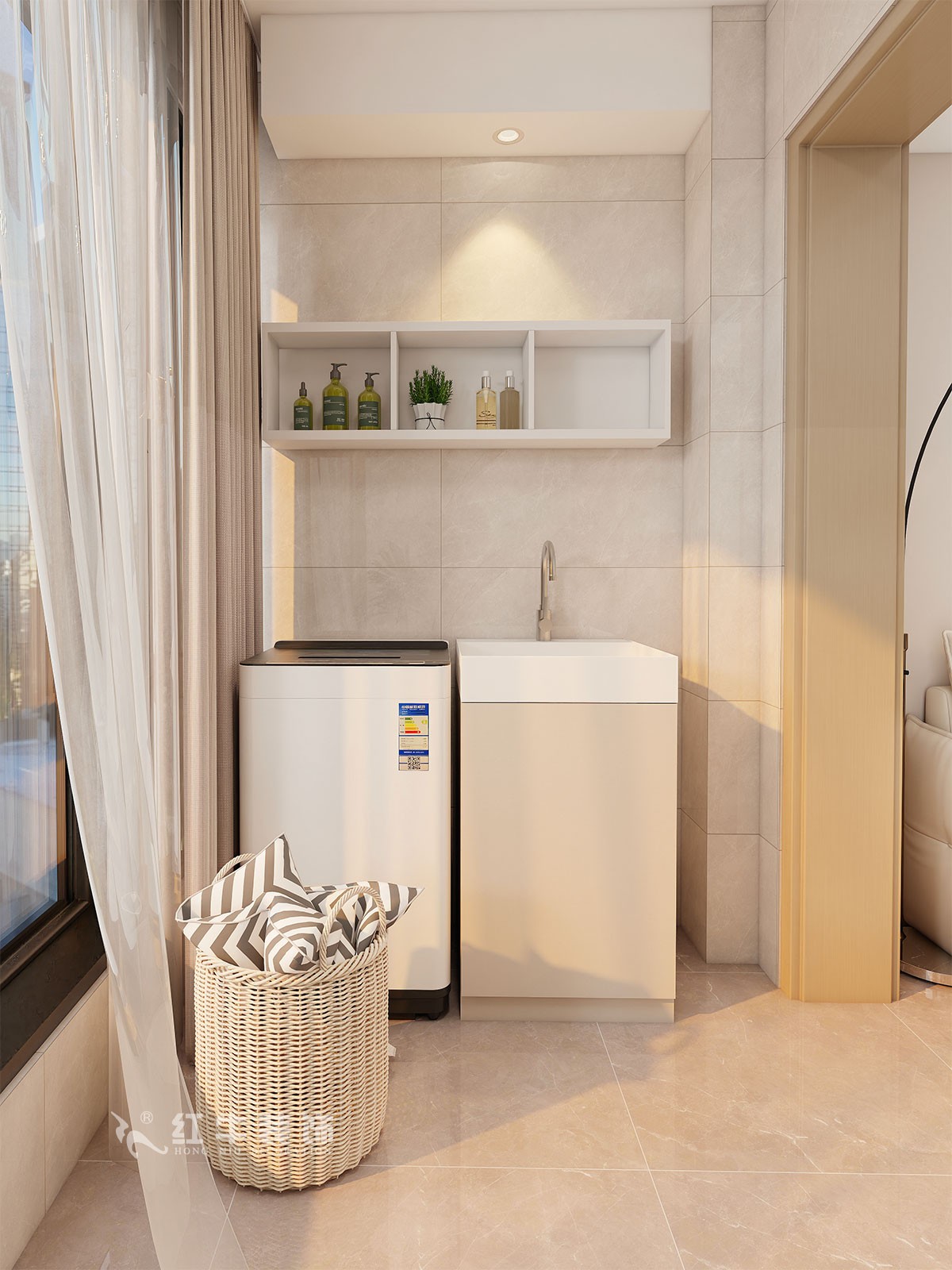 外擴的廚房和餐廳還是很不錯的,解決了客廳空間不夠的缺點。由于衛(wèi)生間太小了,就另外擴出來一個洗衣房。擴出來的洗衣房由于排污水管不太好設(shè)計,就把原有的衛(wèi)生間保留了馬桶和臺盆的功能,也能單獨一個區(qū)域。