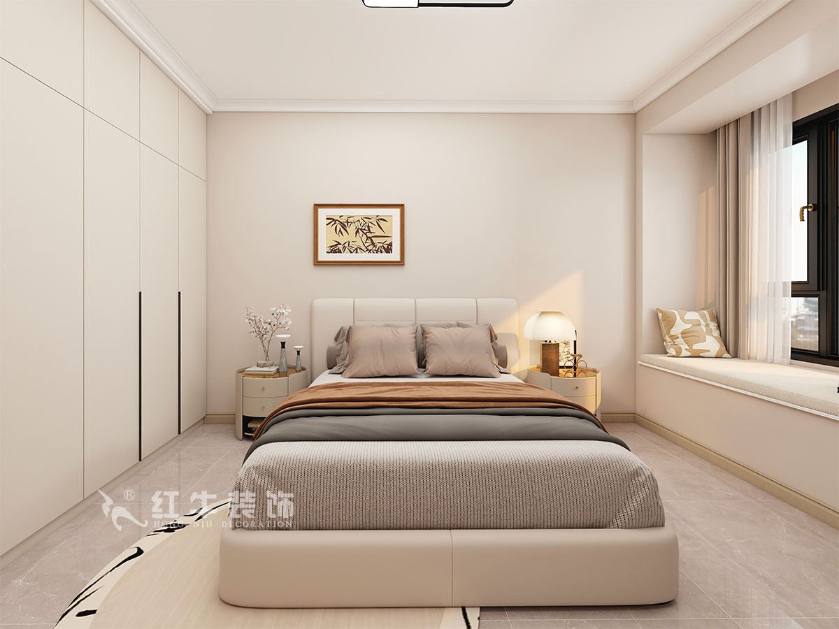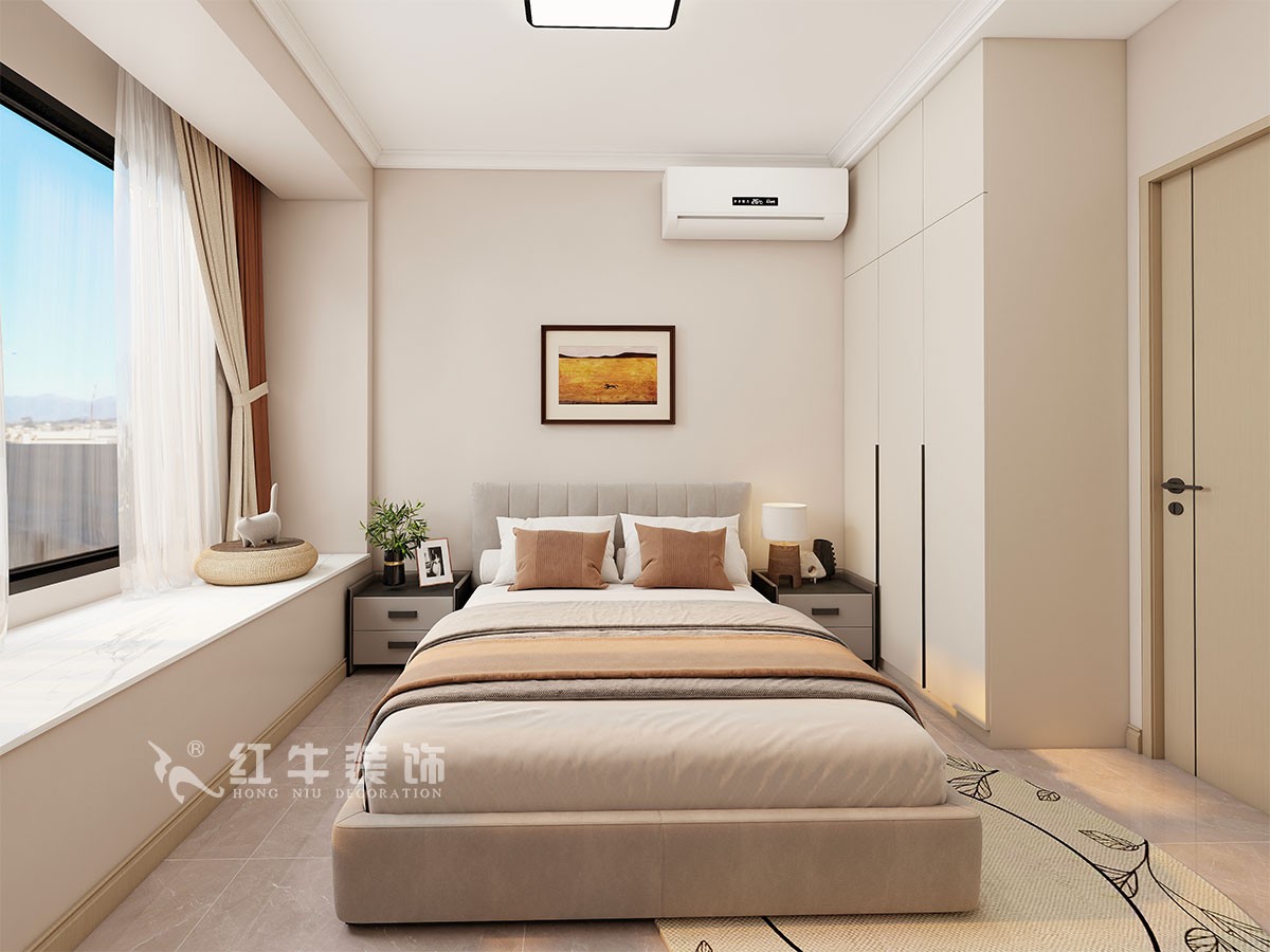 此案主要是改善裝修,在舒適度上要求比較高,臥室是整套房子中最私人也是最體現(xiàn)出溫馨休閑感的空間,在設(shè)計時體現(xiàn)出靜謐舒適的感覺,并且與其他空間有明顯的區(qū)別。