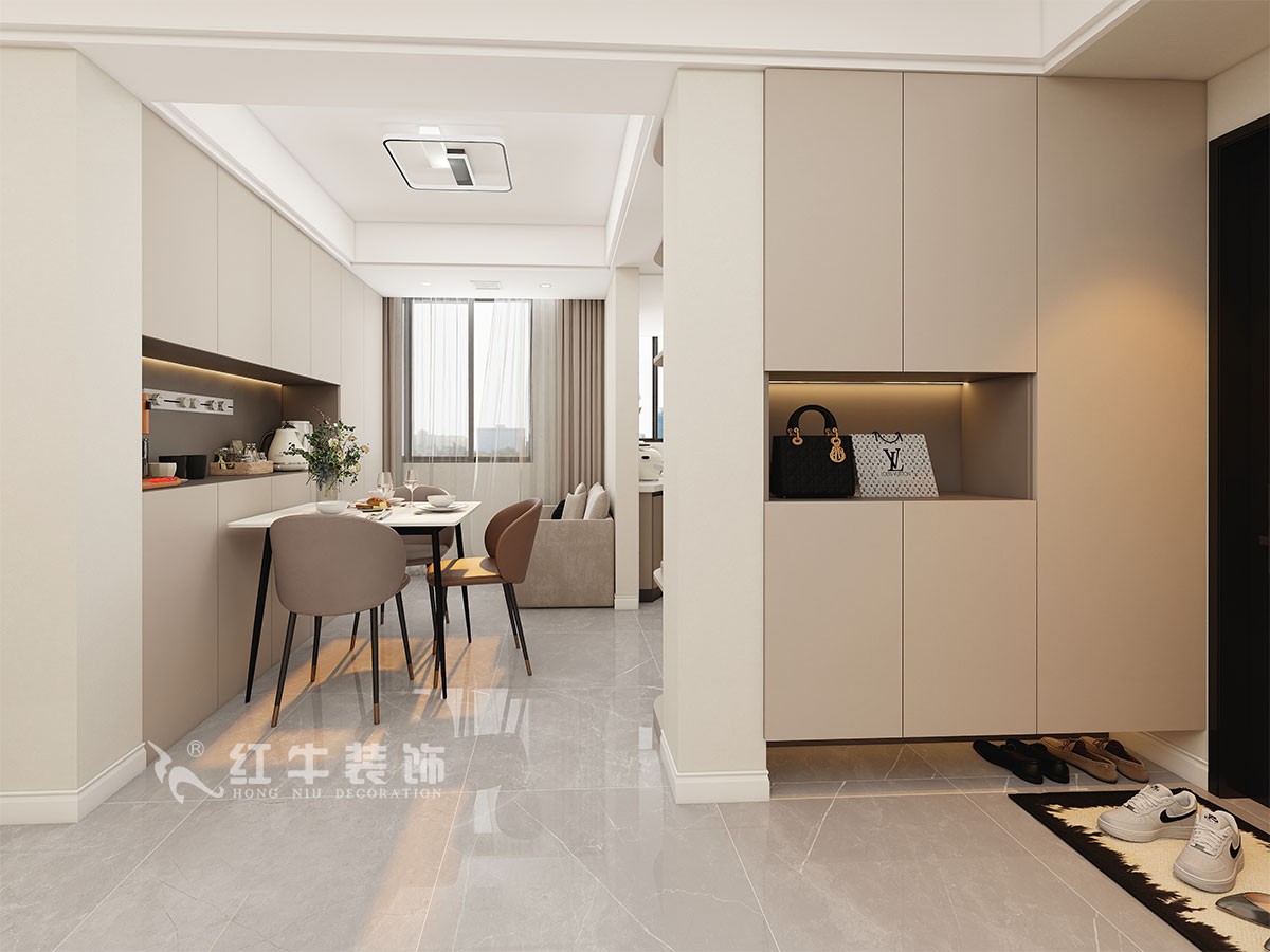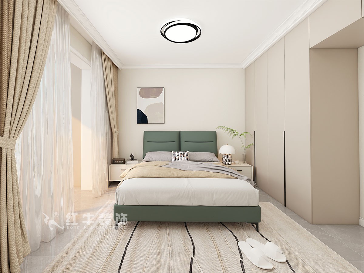 此案主要是改善裝修,在舒適度上要求比較高,臥室是整套房子中最私人也是最體現(xiàn)出溫馨休閑感的空間。在設計時體現(xiàn)出靜謐舒適的感覺,并且與其他空間明顯的區(qū)別。減小廚房面積,打通北房間,變成餐廳,增加了鞋柜空間,有了單獨的客廳和餐廳空間。