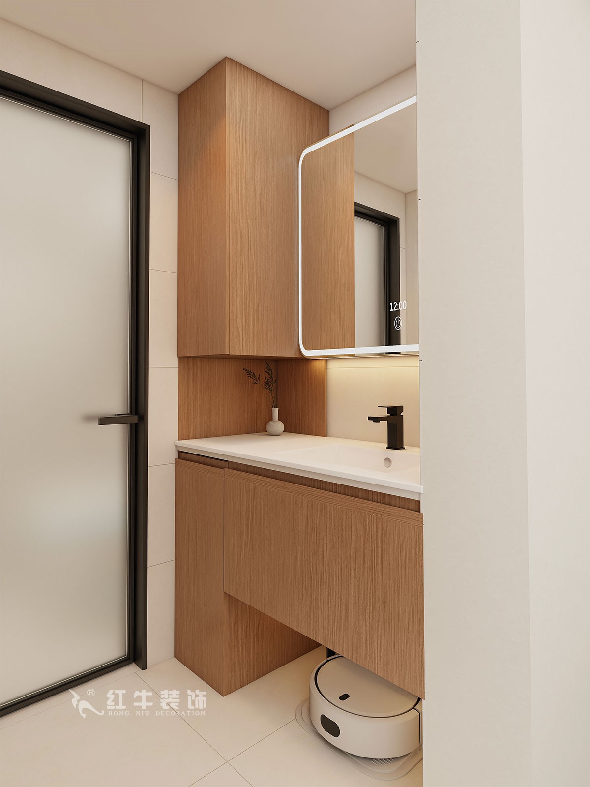 衛(wèi)生間說明:干區(qū)選擇整體色彩搭配干凈、大方,選擇大尺寸白色瓷磚上墻,氛圍感溫馨感滿滿。