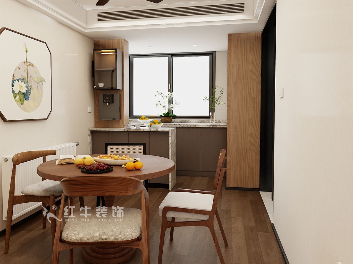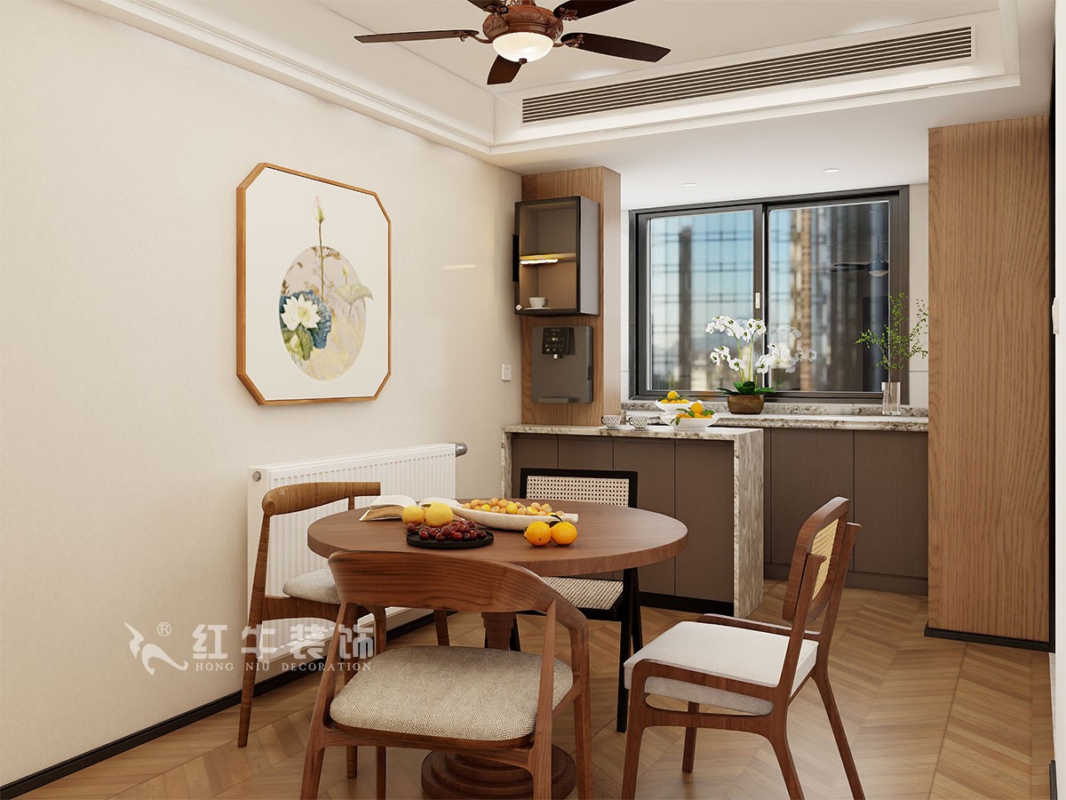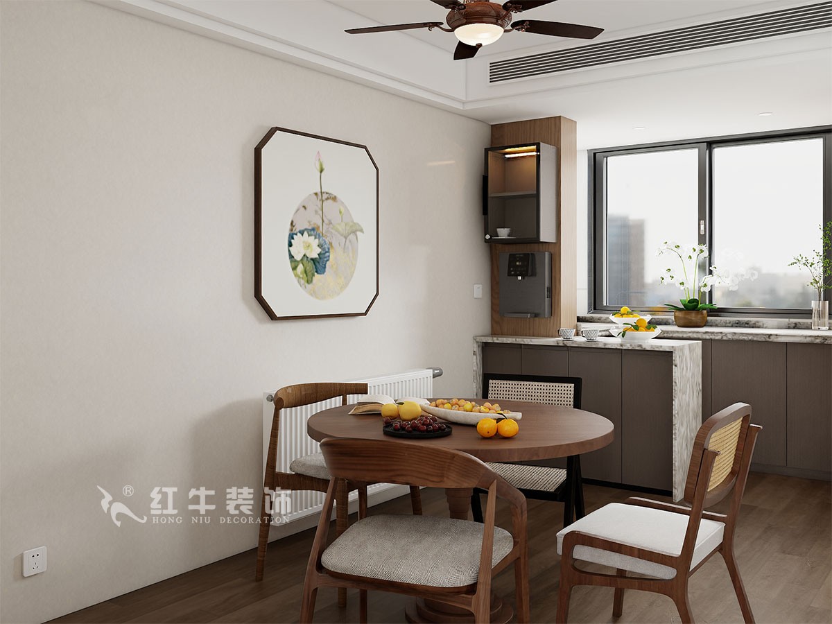 整體結構調整主要是北陽臺的利用,去承重墻,納入到餐廳來,樓層在10樓,正好可以引進小區(qū)內景,讓人身心愉悅。做了一水吧臺和水果切配區(qū),再做一組餐邊柜,實用的同時,給生活增添儀式感和幸福感。整體色調主要柚木色為主,墻面白色乳膠漆,吊頂簡約,配上暖色的燈光,回到家中,有種度假的感覺。