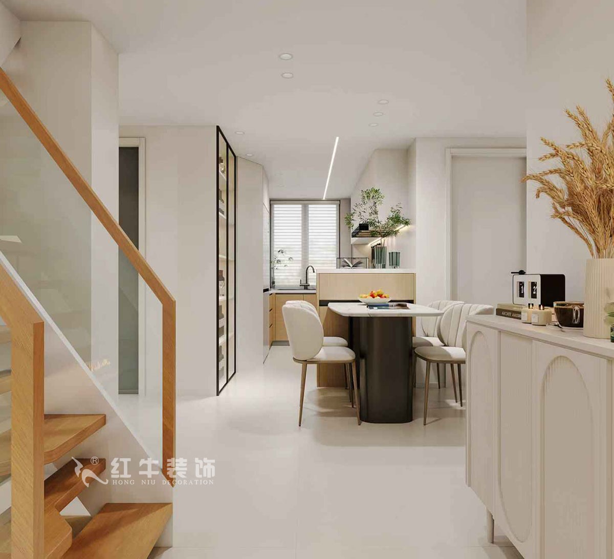 兩個(gè)人00后婚房,整體設(shè)計(jì)為奶油風(fēng)。一樓樓梯進(jìn)行了重新設(shè)計(jì),陽臺(tái)納入客廳設(shè)計(jì),衛(wèi)生間做了干濕分離,廚房作了開放式的設(shè)計(jì),跟客餐廳可以融為一體??蛻魧?chǔ)物要求比較高,作了餐邊柜設(shè)計(jì),不僅滿足了儲(chǔ)物的需求,同時(shí)使得空間更加豐滿、大氣、時(shí)尚。