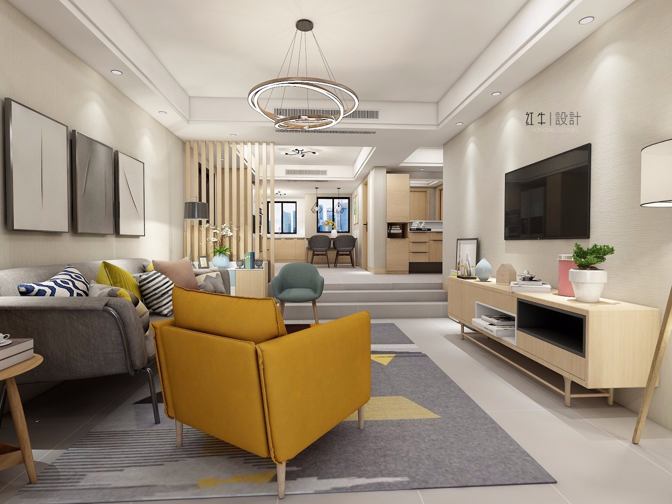 整套方案為北歐風(fēng)格,以簡潔明快的設(shè)計風(fēng)格為主調(diào),空間中大膽運用跳躍的色彩,釋放一種心情,品味一種情趣。