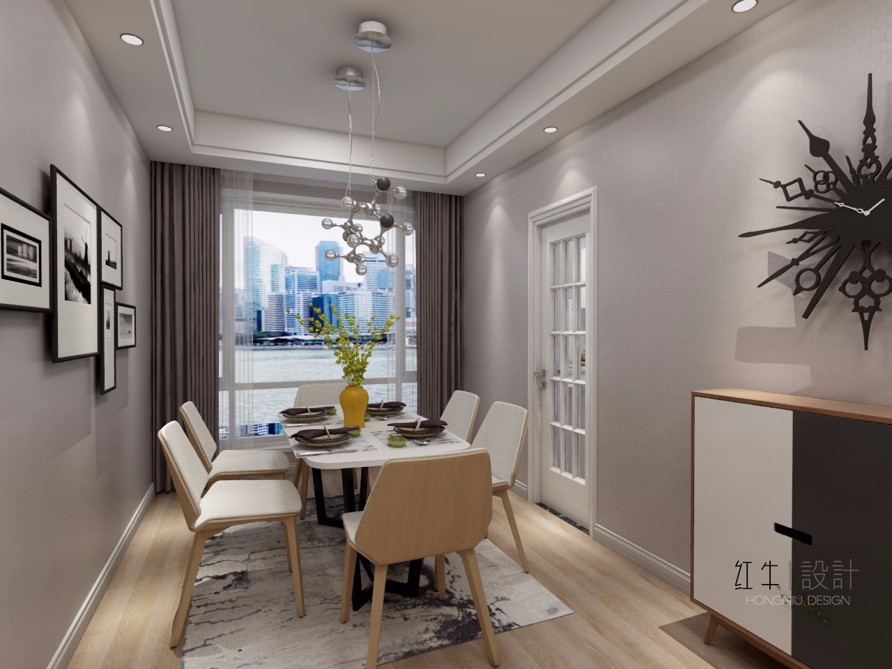此案為北歐風(fēng)格,設(shè)計,簡潔、干練,讓家中呈現(xiàn)一種自然的舒適、干凈之美。一股濃濃的北歐范, 白色的餐椅與原木色的餐桌搭配,現(xiàn)代與自然元素想結(jié)合,溫暖的色調(diào)一致搭配。讓整個餐廳溫暖起來。讓家居生活更輕松隨性。