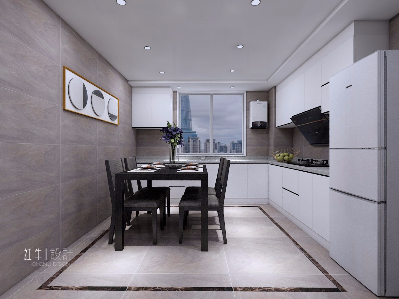 開放式廚房設(shè)計(jì),與餐廳放在一起,能夠節(jié)省不少空間。