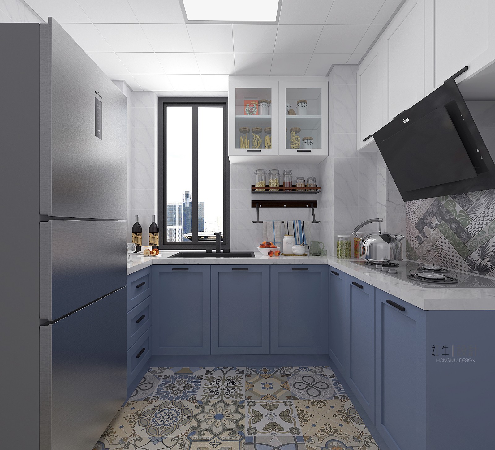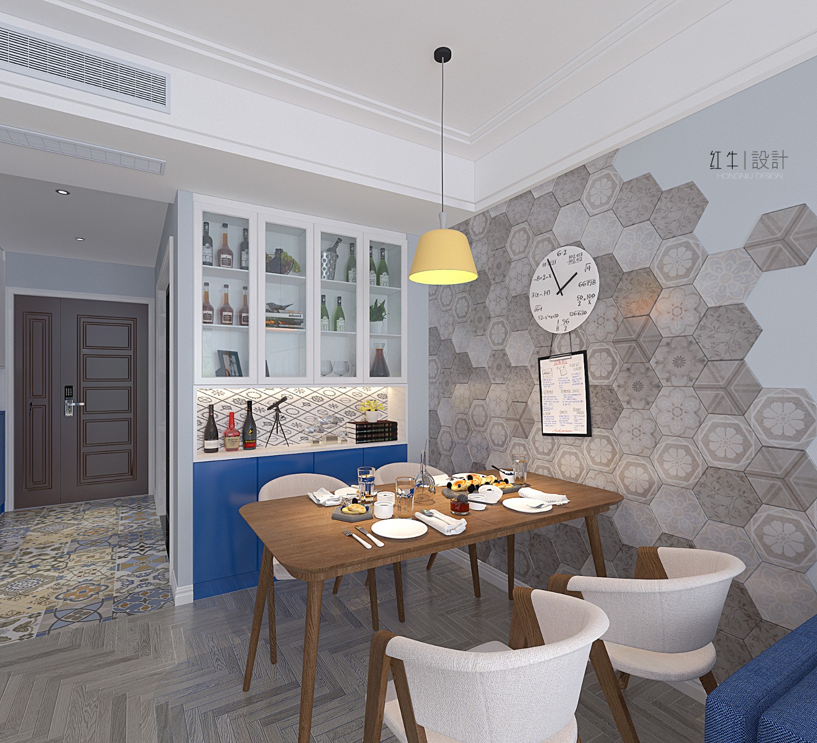 本案業(yè)主是位細(xì)心的單身男青年,對(duì)空間要求和軟裝顏色很有想法,在兩次的設(shè)計(jì)交流溝通后,我們定義風(fēng)格為自由簡(jiǎn)約的北歐風(fēng)格,整體色調(diào)為高級(jí)的藍(lán)灰色。 業(yè)主性格開朗善于交流,希望家也是呈現(xiàn)輕松活潑的狀態(tài),所以在裝飾上,我們選用了一些多邊形足球磚和異形彩色磚。