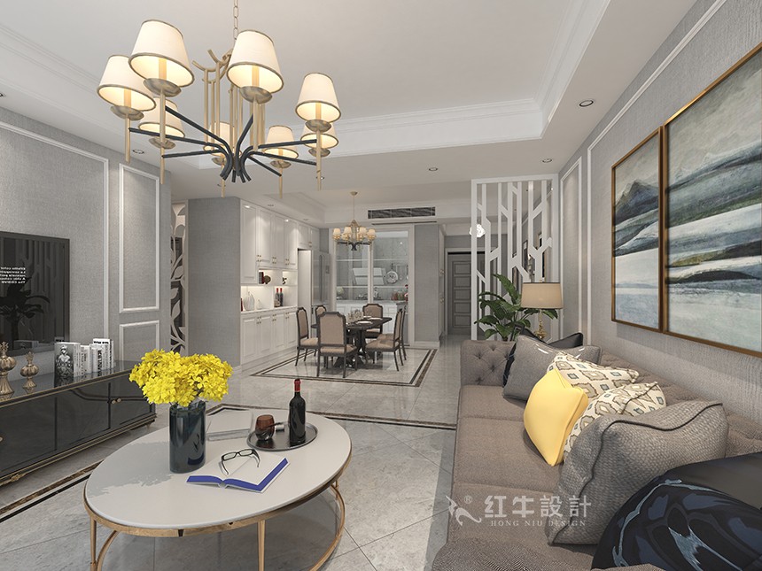南京老房翻新--即便少掉一個衛(wèi)生間,也要單獨的衣帽間!12仇美蓉_康盛花園115㎡輕奢風格裝修效果圖_客廳