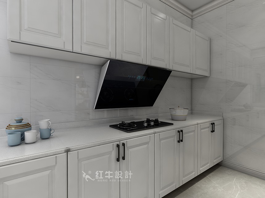 L形操作臺設計,最大化的釋放了廚房的操作空間,白色櫥柜顯得干凈清爽,在兼具家居空間美感之余,又完美地收納了各類廚房物品。