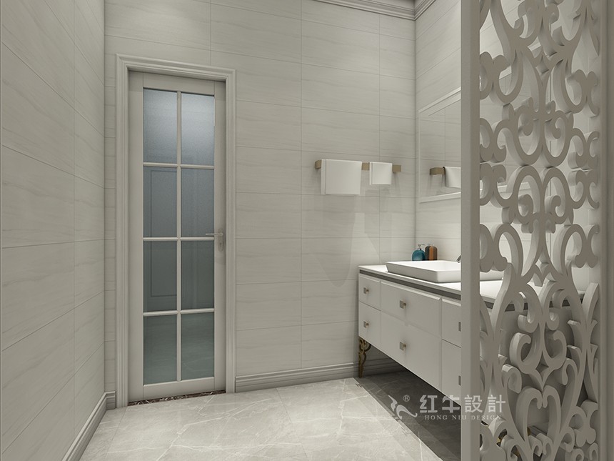 外置的洗手臺讓干濕分離更徹底,同時提高了衛(wèi)生間的使用效率。鏤空隔斷讓整體空間隔而不斷,別有一番妙趣。