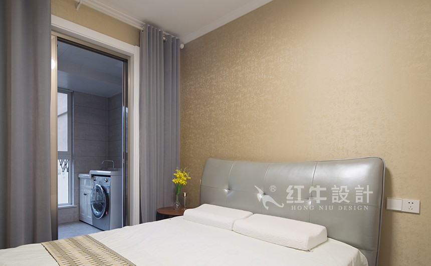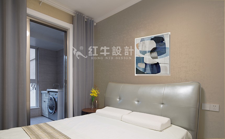 墻面色調(diào)莊重而不失雅致,給人以沉穩(wěn)、懷舊的感覺。同時選用了灰色的窗簾,白色的床品與之搭配,整體環(huán)境充滿了和諧與美感。