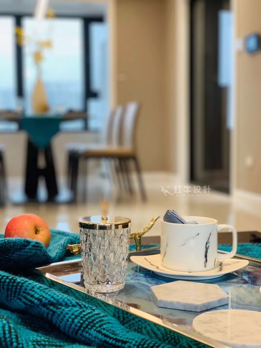 桌旗與餐具的搭配,讓餐廳顯得更加的高檔大方,與客廳裝飾品呼應(yīng)的顏色,體現(xiàn)家裝整體的和諧性。