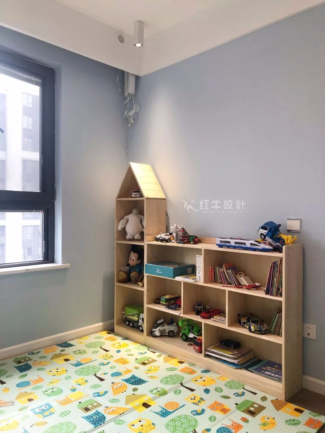 地面鋪著充滿童趣的墊子,倚墻而立的是裝滿玩具的書(shū)架,無(wú)不顯示出這是一處孩童樂(lè)園。