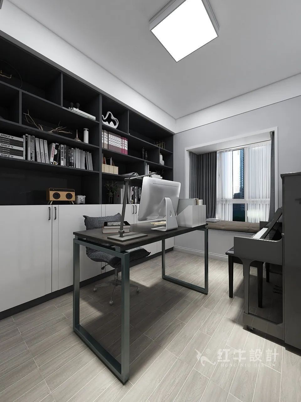 蔣琛_紅牛設(shè)計(jì)--電建洺悅府160㎡現(xiàn)代風(fēng)格12效果圖欣賞_書(shū)房