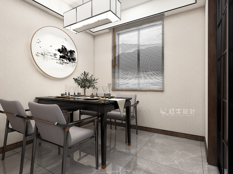 本案設(shè)計通過結(jié)構(gòu)改造明確客餐廳區(qū)域劃分,通過廚房門的改造增加了門廳鞋柜的儲物空間,衛(wèi)生間通過改造形成一個整體空間更合理。重新區(qū)域的分隔方式展示出中式家具的層次之美,再配一些簡約的造型為基礎(chǔ),添加了中式元素,使整個空間更加豐富,厚而不重,展現(xiàn)整個家居層次之美。