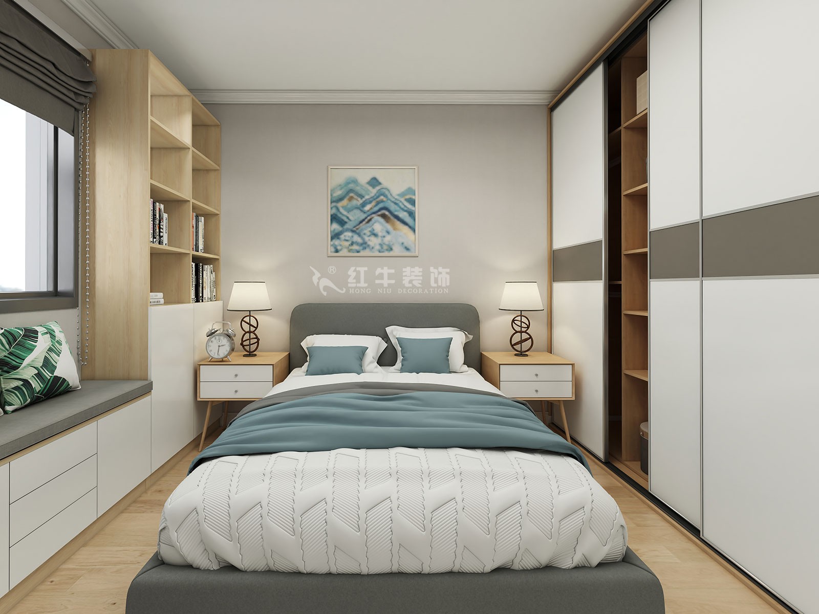 整體現(xiàn)代北歐風(fēng)格的設(shè)計(jì),素雅的多人沙發(fā),客廳在功能方面是會(huì)客休閑,整體的客廳設(shè)計(jì)象征著主人品位。深色地毯的搭配讓整個(gè)客廳在開(kāi)放式中似乎又與餐廳相區(qū)別開(kāi)來(lái)。簡(jiǎn)約大方的地板設(shè)計(jì),正方體似的的長(zhǎng)桌簡(jiǎn)約而時(shí)尚。搭配上顯眼的綠色植物讓整個(gè)客廳呈現(xiàn)出一種生機(jī)勃勃的自然美。臥室是整套房子中最私人也是最體現(xiàn)出溫馨休閑感的空間,一般在設(shè)計(jì)時(shí)要體現(xiàn)出靜謐舒適的感覺(jué),并且與其他空間明顯的區(qū)別。在設(shè)計(jì)時(shí)一般會(huì)根據(jù)主人的個(gè)性要求去設(shè)計(jì)。在這套方案效果中,臥室以白色這種淡然明亮的色調(diào)出現(xiàn),它的整個(gè)面積并不大,由于臥室的核心設(shè)計(jì)是床與衣柜,所以除了擺設(shè)這簡(jiǎn)約的雙人床和臥室必備的衣柜、以外,沒(méi)有再過(guò)多的放置其它物品。整個(gè)臥室呈現(xiàn)出一種淡靜的清新感,簡(jiǎn)約而素雅。