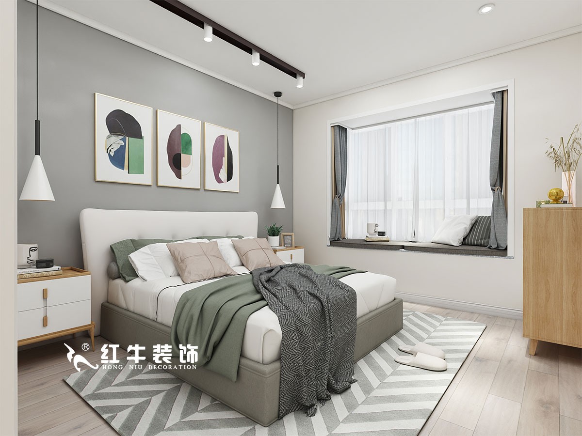 整體現(xiàn)代北歐風(fēng)格的設(shè)計,素雅的多人沙發(fā),客廳在功能方面是會客休閑,整體的客廳設(shè)計象征著主人品位。深色地毯的搭配讓整個客廳在開放式中似乎又與餐廳相區(qū)別開來。簡約大方的地板設(shè)計,正方體似的的長桌簡約而時尚。搭配上顯眼的綠色植物讓整個客廳呈現(xiàn)出一種生機勃勃的自然美。臥室是整套房子中最私人也是最體現(xiàn)出溫馨休閑感的空間,一般在設(shè)計時要體現(xiàn)出靜謐舒適的感覺,并且與其他空間明顯的區(qū)別。在設(shè)計時一般會根據(jù)主人的個性要求去設(shè)計。在這套方案效果中,臥室以白色這種淡然明亮的色調(diào)出現(xiàn),它的整個面積并不大,由于臥室的核心設(shè)計是床與衣柜,所以除了擺設(shè)這簡約的雙人床和臥室必備的衣柜、以外,沒有再過多的放置其它物品。整個臥室呈現(xiàn)出一種淡靜的清新感,簡約而素雅。