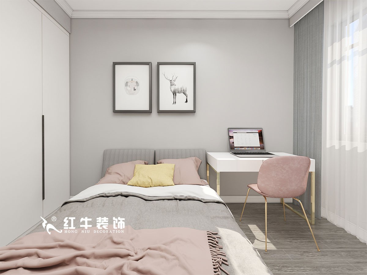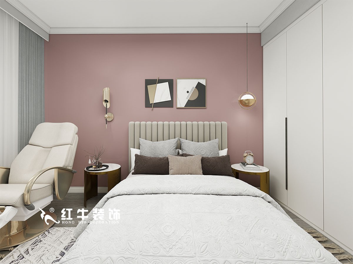 背景墻選擇了不落俗套的粉色系,結(jié)合紗簾看起來(lái)更有夢(mèng)幻感。床頭的設(shè)計(jì)起到了中和的作用,不會(huì)讓粉色看起來(lái)太過(guò)甜膩,像是燈具、裝飾畫(huà)的選擇就營(yíng)造出細(xì)節(jié)的精致感,展現(xiàn)出輕奢氣質(zhì)。