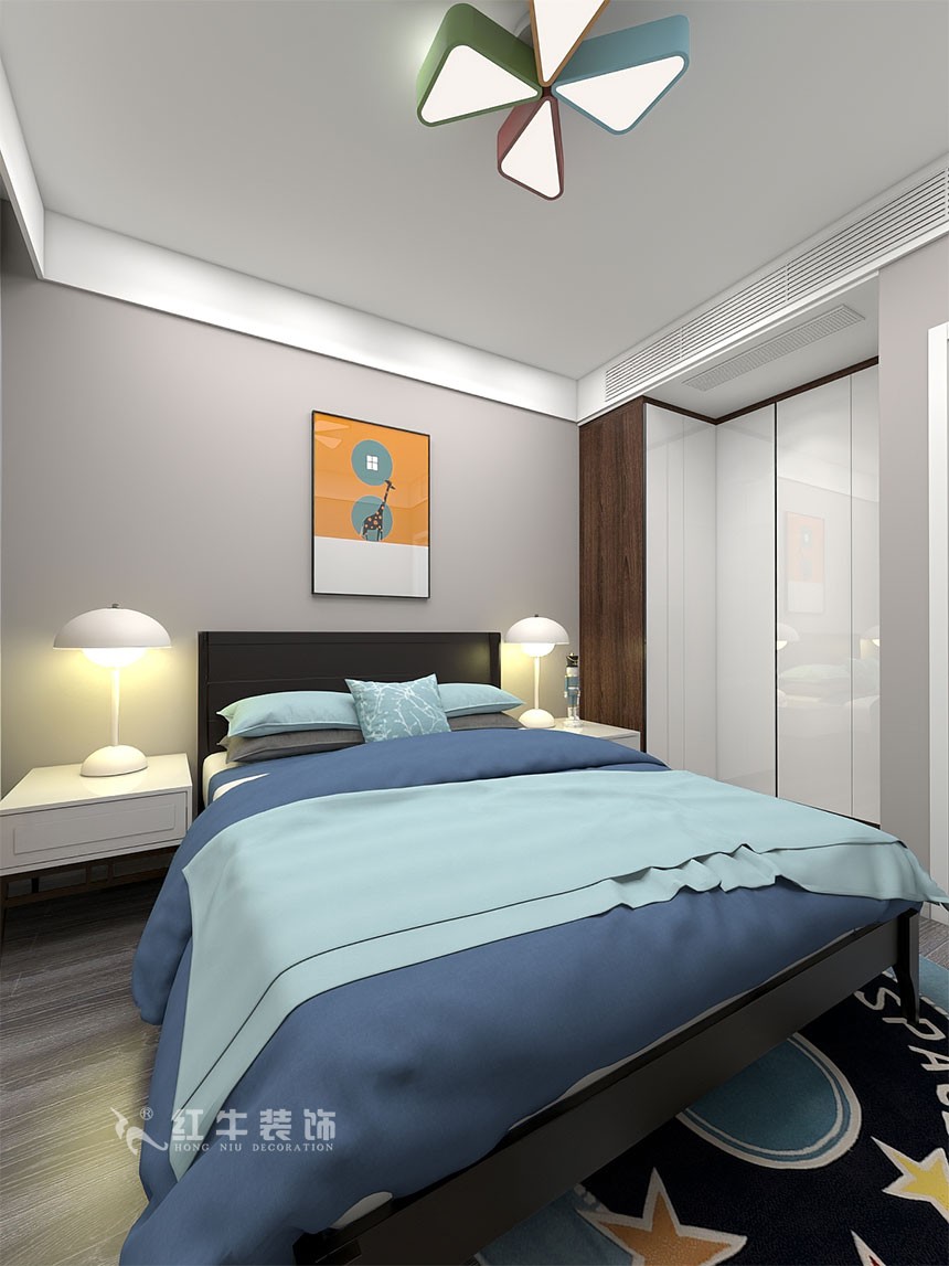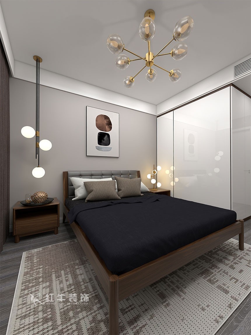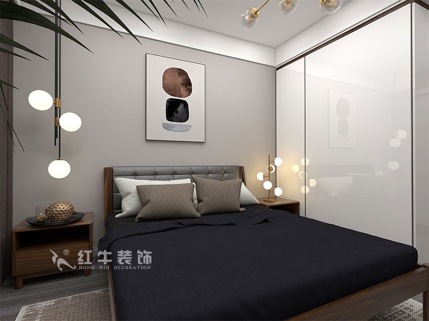 客餐廳色調(diào)統(tǒng)一又不失精致,電視背景墻沒有過多的華麗修飾,給空間本身一個開拓、延展性,給居住者一個慵懶、明快的起居環(huán)境。主臥次臥,依靠現(xiàn)代風(fēng)格家具本身的線條感,搭配同樣風(fēng)格的裝飾畫,給人以休閑自在的視覺感受。書房是辦公空間,臨窗處以整面墻的衣柜來做處理,搭配榻榻米設(shè)計,給了本就不大的空間一個視覺的開放性,心情也自然就舒緩很多。