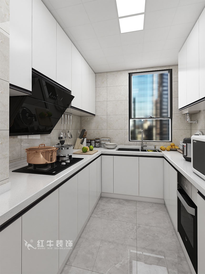 房子就是比較常規(guī)的四房?jī)蓮d的戶型,客戶家里兩個(gè)孩子,需要很多的收納空間,同時(shí)四個(gè)房間都要保留,所以在客廳空間,把整個(gè)背景墻加了一組整體柜子。廚房也整體擴(kuò)出來了,增加了臺(tái)面空間。