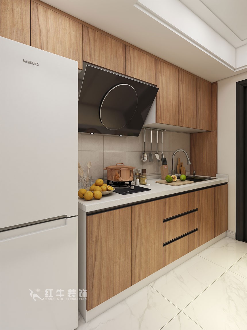 本案設(shè)計(jì)墻面用的是白色乳膠漆,家具柜體以木色為主,配上白色的門(mén)板,讓空間更加溫馨,吊頂層高做高點(diǎn),燈光設(shè)計(jì)講究空間的柔和,著重點(diǎn)光源的點(diǎn)綴,讓家更加的明亮溫馨。