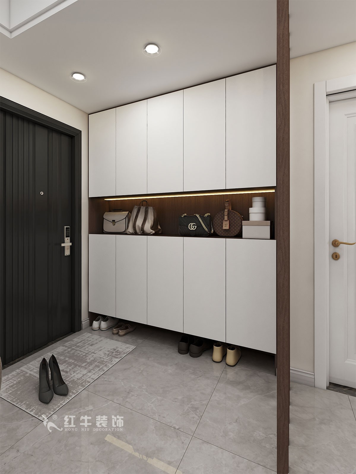 進(jìn)戶門(mén)入戶空間相對(duì)狹小,建筑設(shè)計(jì)中未預(yù)留衣帽鞋柜的位置。