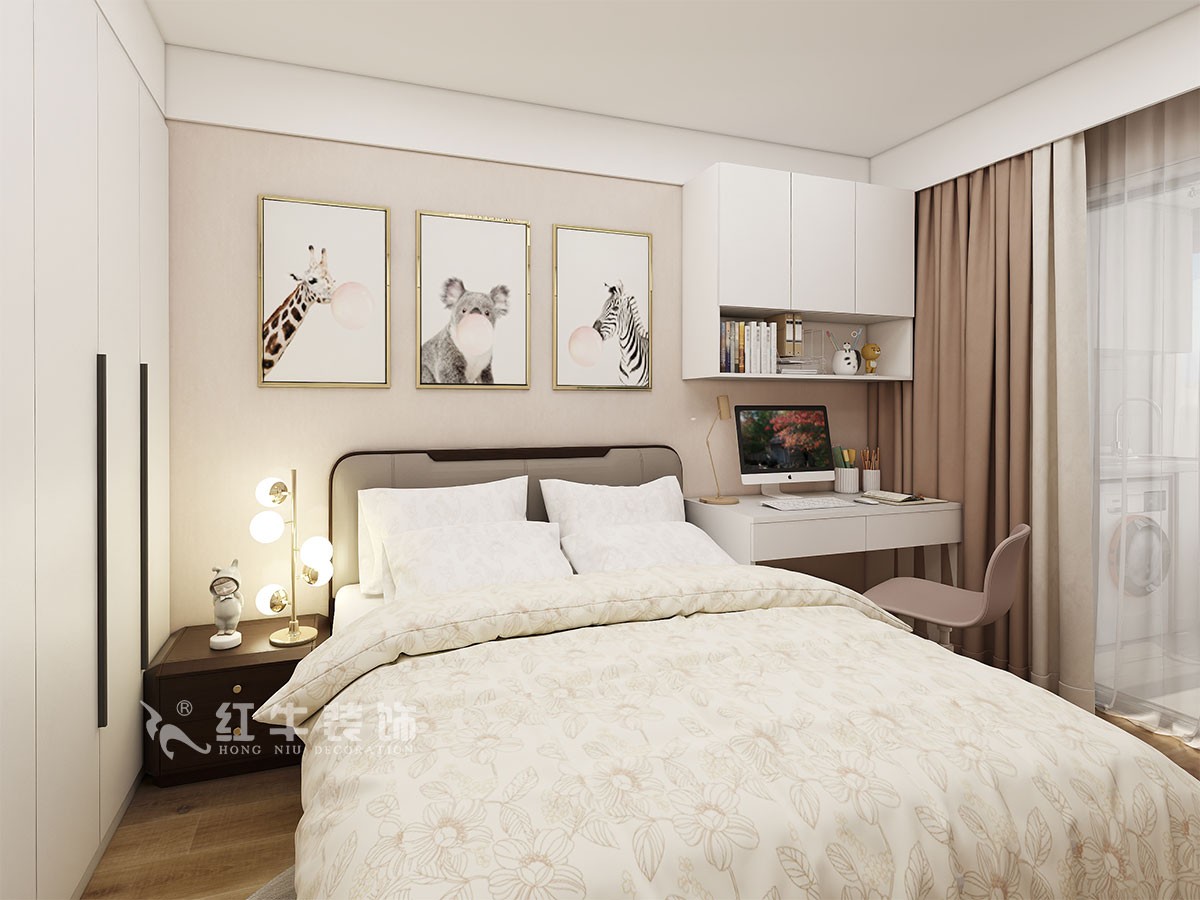 客餐廳色調(diào)統(tǒng)一又不失精致,電視背景墻沒(méi)有過(guò)多的華麗修飾,給空間本身一個(gè)開(kāi)拓、延展性,給居住者一個(gè)慵懶、明快的起居環(huán)境。主臥次臥,依靠現(xiàn)代風(fēng)格家具本身的線條感,搭配同樣風(fēng)格的裝飾畫(huà),給人以休閑自在的視覺(jué)感受。書(shū)房是辦公空間,臨窗處以整面墻的衣柜來(lái)做處理,搭配榻榻米設(shè)計(jì),給了本就不大的空間一個(gè)視覺(jué)的開(kāi)放性,心情也自然就舒緩很多。