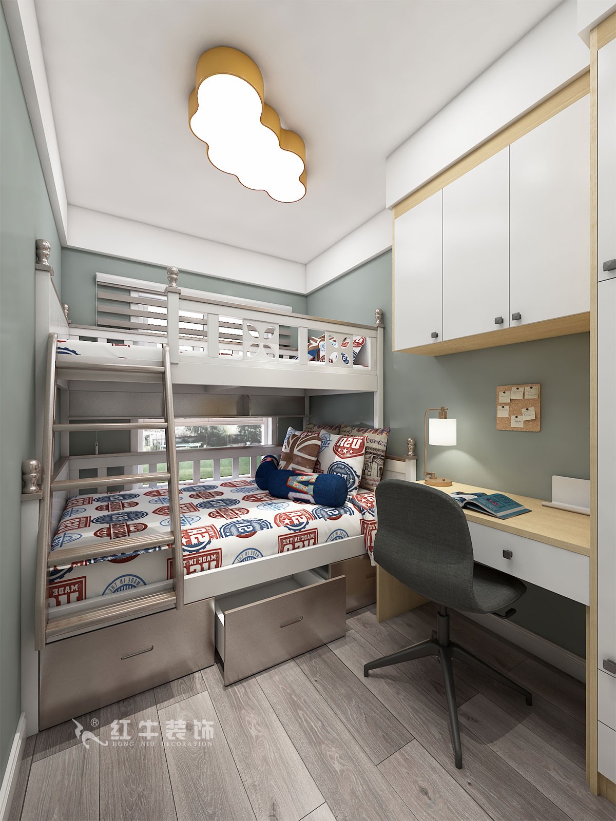 本案設(shè)計(jì)業(yè)主兩代人居住,小夫妻帶小孩居住,客廳入戶(hù)掏墻做嵌入式鞋柜,小孩房間雙層床,方便日后家里老人過(guò)來(lái)臨時(shí)居住。寫(xiě)字桌跟衣柜定制,有效利用空間,增加收納。全屋木色加白門(mén)板搭配,顯得溫馨明亮。