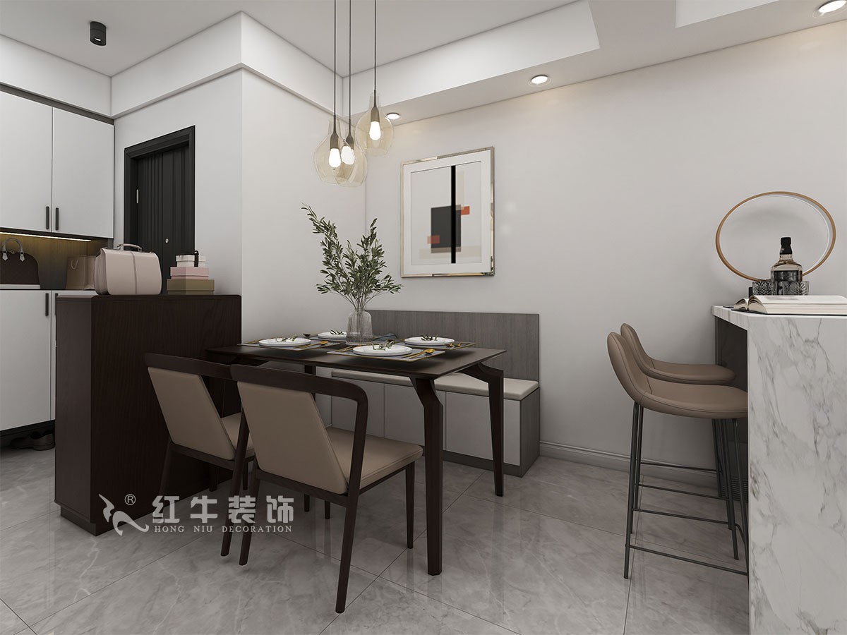 本案簡(jiǎn)約風(fēng)格,在增加儲(chǔ)物功能的基礎(chǔ)上利用了門廳區(qū)域,裝飾柜既能儲(chǔ)物也可以展示。廚房在墻體的改造下把冰箱合理安排好,次臥室整體規(guī)劃后增加了儲(chǔ)物功能,在空間的設(shè)計(jì)上強(qiáng)調(diào)的是室內(nèi)空間開闊的理念,這樣的設(shè)計(jì)風(fēng)格沒有過(guò)多的裝飾物,主要以簡(jiǎn)單的線條和裝飾簡(jiǎn)潔的造型來(lái)體現(xiàn)出現(xiàn)代簡(jiǎn)約型的設(shè)計(jì)。