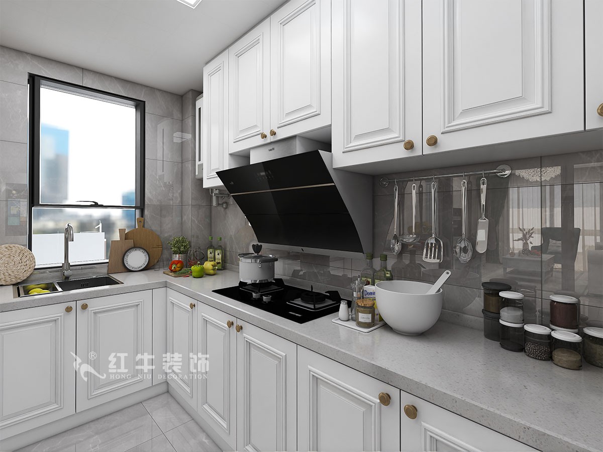 戶型方面尊重業(yè)主的意見,沒有過(guò)多調(diào)整,保留兩個(gè)衛(wèi)生間滿足同時(shí)使用的需求,減少主衛(wèi)面積打造屬于業(yè)主的衣帽間,整排的收納衣柜滿足業(yè)主的儲(chǔ)物需求;在餐廚空間設(shè)計(jì)上,打通廚房與餐廳的隔墻,增設(shè)一個(gè)吧臺(tái),解決廚房窗戶狹小的問(wèn)題,讓整個(gè)空間更加通透,同時(shí)增加設(shè)計(jì)的趣味性。
