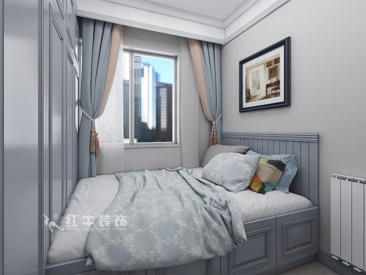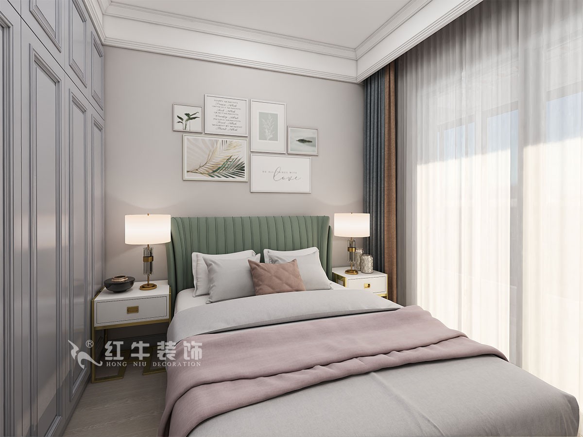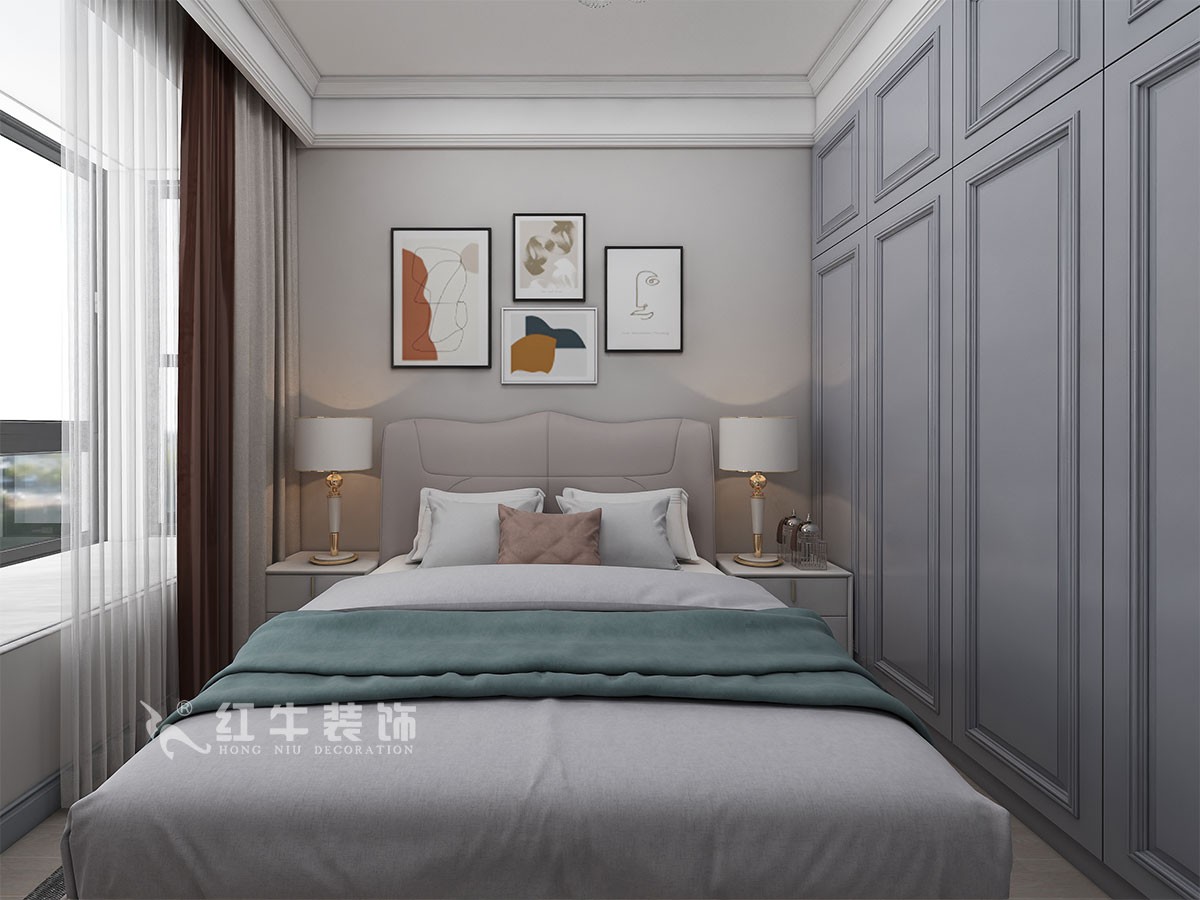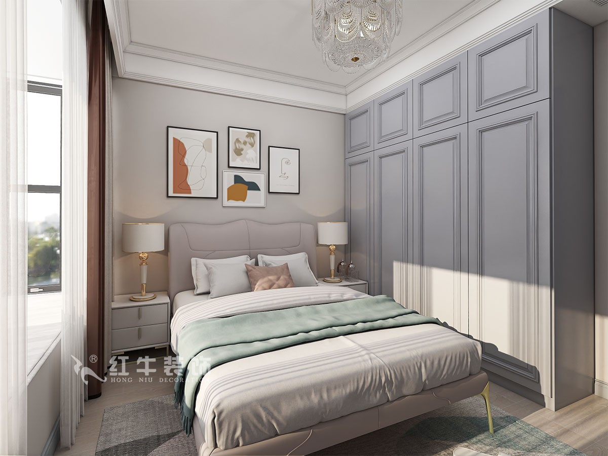 臥室的設(shè)計(jì)上,設(shè)計(jì)師選擇注重舒適氛圍的營(yíng)造,在用色上講究和諧、統(tǒng)一,選擇色彩豐富的軟裝布置與冷色調(diào)的硬裝相融合,讓古典與輕奢相互碰撞,滿足業(yè)主的個(gè)性化設(shè)計(jì)需求。