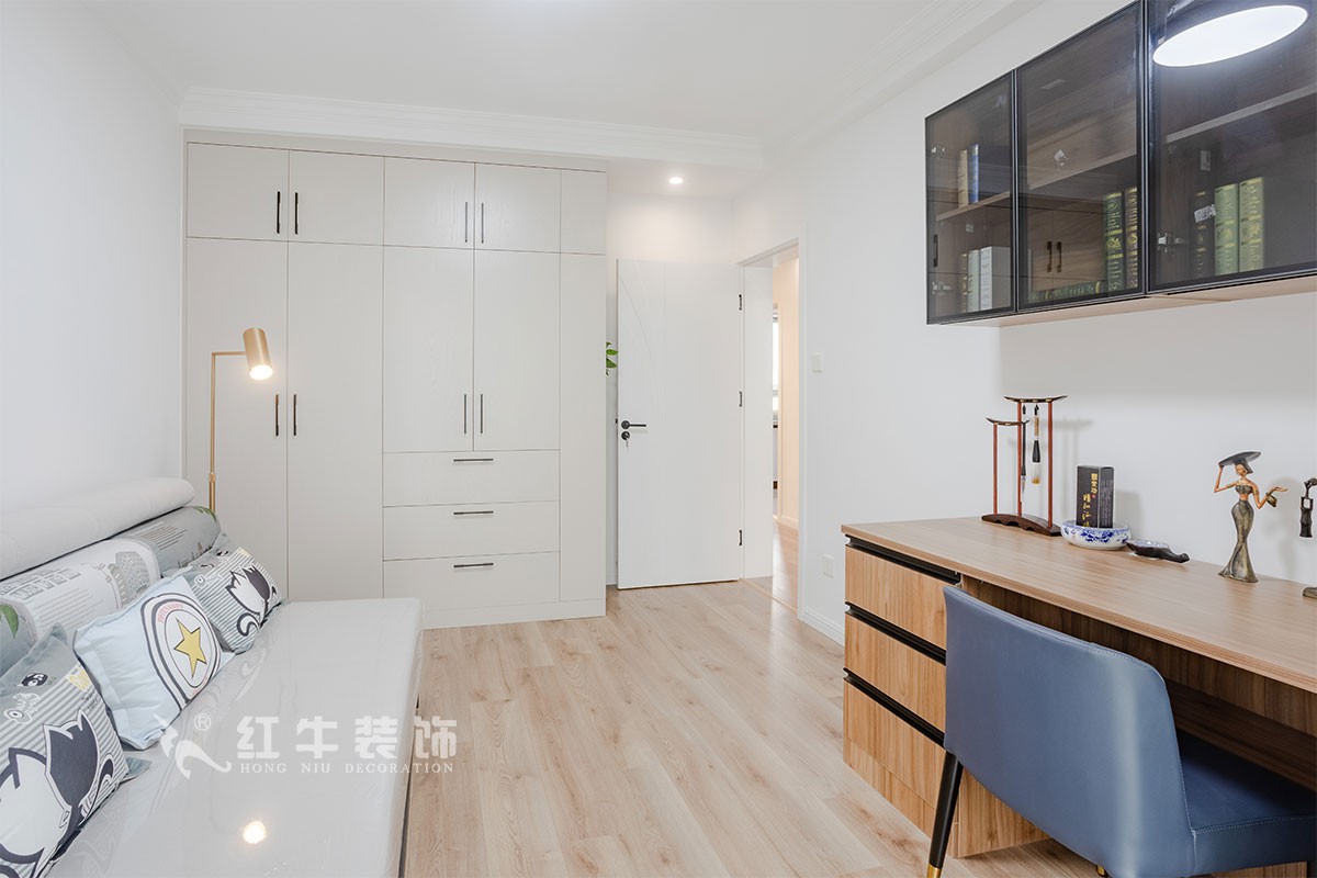 一個充滿憧憬的家,總是希望家里處處都是驚喜,仿佛每個空間都有一份禮物在等待著自己。主臥室簡單顯主人家的生活細致,閱讀燈的點綴更添氛圍,整體的風(fēng)格及色彩的運用都是使空間更顯舒適輕松安靜的氛圍,放松、愉悅。書房:無拘無束,自由自在,卻總能恰到好處地表達某種極難說出口的感情。而此刻,在如此環(huán)境下的我們所創(chuàng)作出的文字似乎也可以熠熠發(fā)光。