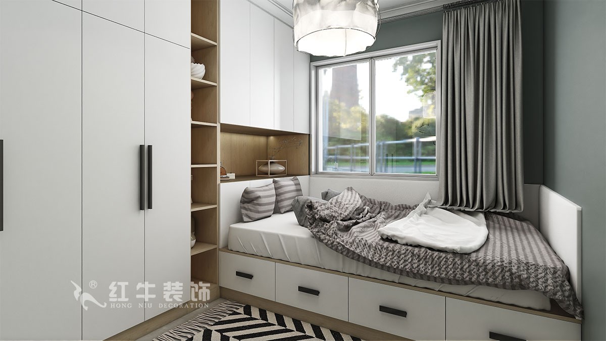 次臥室設(shè)計(jì)了組合柜,既有學(xué)習(xí)的區(qū)域同時(shí)也兼顧了休閑空間。