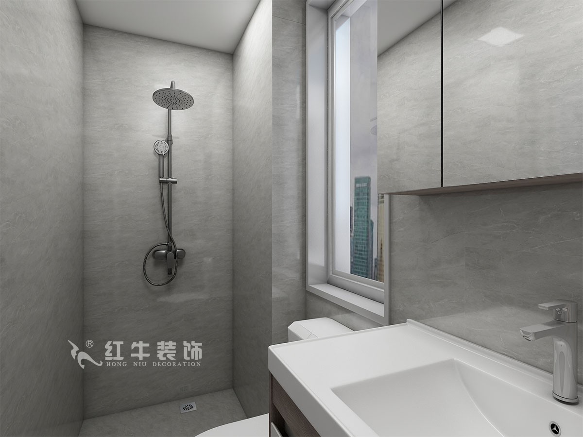 整體戶型比較規(guī)整,就是衛(wèi)生間的空間很小,沒有洗漱的位置,所以把衛(wèi)生間的墻體往次臥移動,這樣衛(wèi)生間的空間擴大,使用起來很方便。