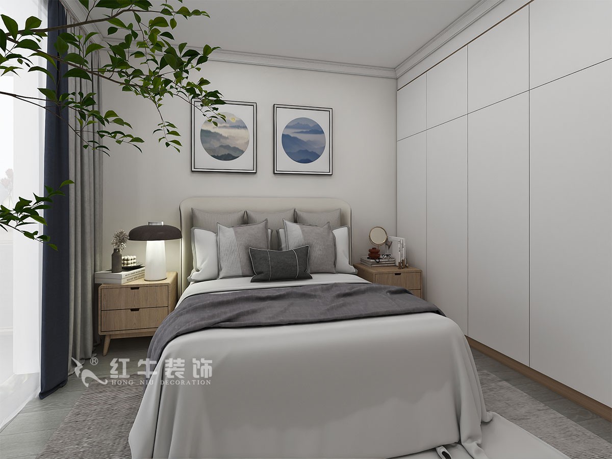 此案主要是一家三口居住,在舒適度上要求比較高,臥室是整套房子中最私人也是最體現(xiàn)出溫馨休閑感的空間,在設(shè)計時體現(xiàn)出靜謐舒適的感覺,并且與其他空間明顯的區(qū)別,把原本從廚房進書房的空間門洞位置換了,這樣客廳的采光更好,區(qū)域劃分明顯,動靜分離,再利用吊頂?shù)模孛娴脑煨痛钆?,使得空間更顯得溫馨,溫馨設(shè)計,增加空間的寬敞度,摒棄了大燈的光源刺眼的劣勢。吊頂簡潔大氣,配以輕現(xiàn)代家具,完美闡釋了簡約風格。整體現(xiàn)代簡約風格的設(shè)計,高檔的沙發(fā),客廳在功能方面是會客休閑,在這套室內(nèi)設(shè)計中,客廳選擇設(shè)計在靠近臥室的墻上位置。深色地毯的搭配讓整個客廳在開放式中似乎又與餐廳相區(qū)別開來,搭配上顯眼的綠色植物讓整個客廳呈現(xiàn)出一種生機勃勃的自然美。