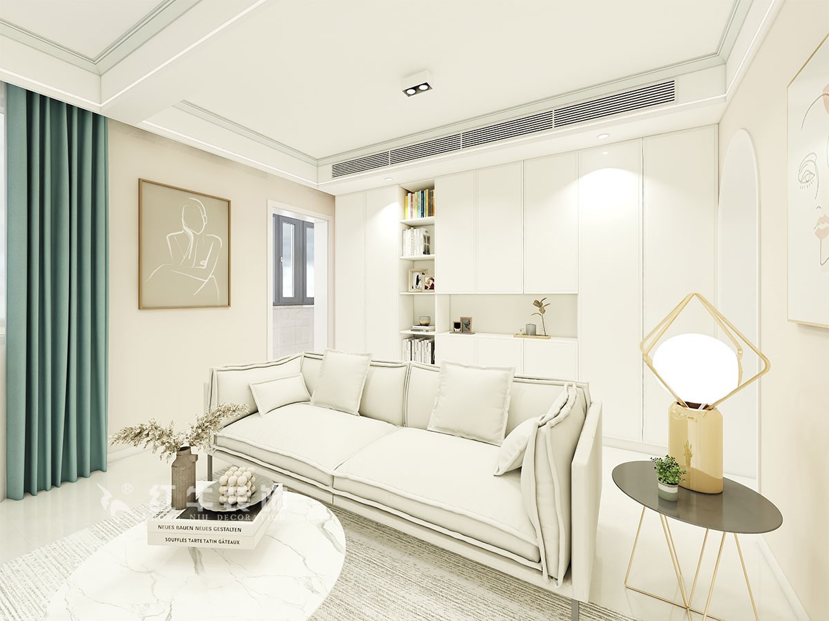 本案是個(gè)老房子重新裝修,客戶是想做婚房裝修,喜歡奶油小清新的風(fēng)格,結(jié)構(gòu)上是80年代的房屋,老房子結(jié)構(gòu),結(jié)構(gòu)上基本上不能改動(dòng),客廳縱深比較長(zhǎng),為了動(dòng)線和餐廳的采光,在客廳門的另外一邊開了一個(gè)門洞,使得客廳的動(dòng)線更方便,整體乃奶油色加白色的石膏線條,現(xiàn)代的有創(chuàng)意的家具,問(wèn)題溫馨簡(jiǎn)潔。主臥背景墻選用白色石膏線條和地面灰木紋的地板作為整體的襯托,讓主臥室充滿了寧?kù)o又不是溫馨。
